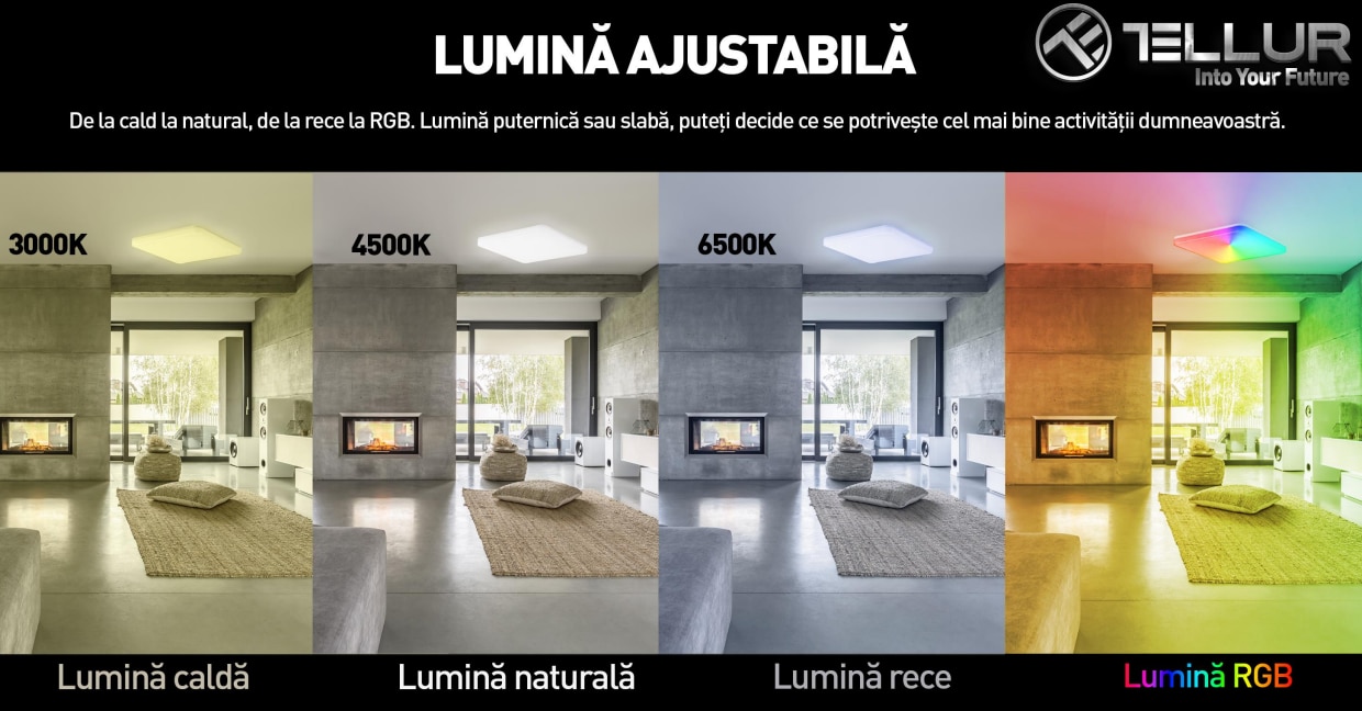Usor de instalat si folosit prin aplicatia Tellur Smart.